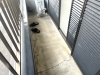 そこで今回は、ウレタン防水工事を実施。ベランダには入居者様のエアコン室外機も設置されていたため、室外機を一つずつ台に乗せてずらしながら、床面を丁寧に施工していきました。