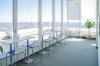 展望フロアには、約4メートルの大きな窓に沿って休憩用の椅子が設置されています。